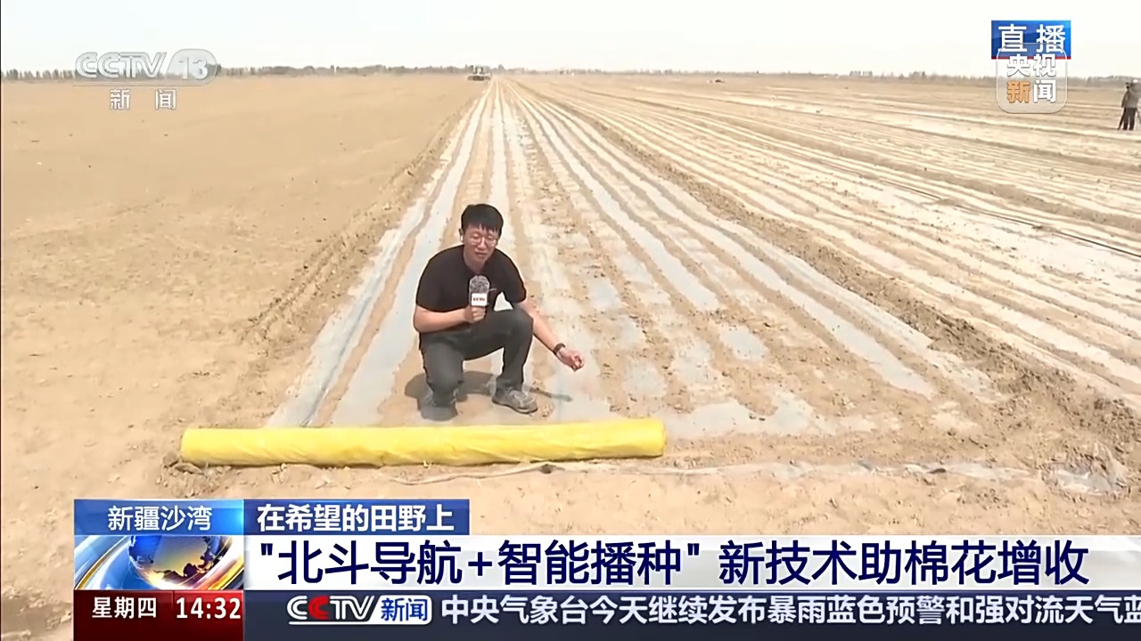 總臺記者 高鵬飛:我現(xiàn)在是在新疆塔城沙灣市老沙灣鎮(zhèn),身后這片是500畝的高標準農田。眼下,大伙兒正忙著種棉花呢。