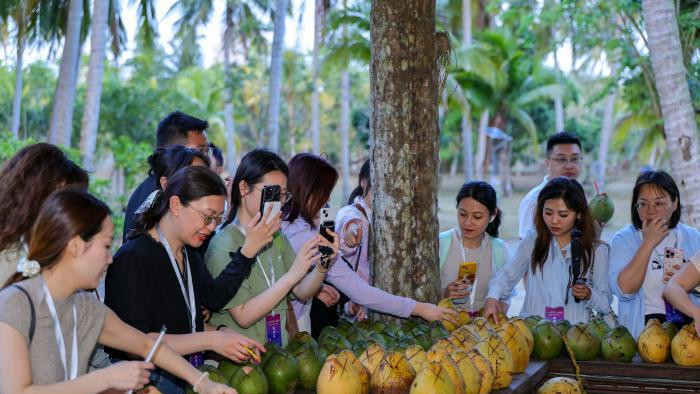 “椰子樹渾身是寶,椰肉鮮嫩、椰汁爽口、椰干當梁、椰殼可雕、椰根入藥。”椰子所辦公室主任賈永立說。對海外華媒人而言,這里是一個“可體驗、可傳播、可共情”的海南故事。澳大利亞澳華電視傳媒董事長任傳功感嘆,園區(qū)匯集全球諸多椰子品種,既是活態(tài)植物基因庫,也是立體的熱帶植物百科全書。游客不僅能看、能學,還能通過椰子制品、椰子美食、椰雕工藝,真切感受椰子如何融入文昌人的衣食住行。