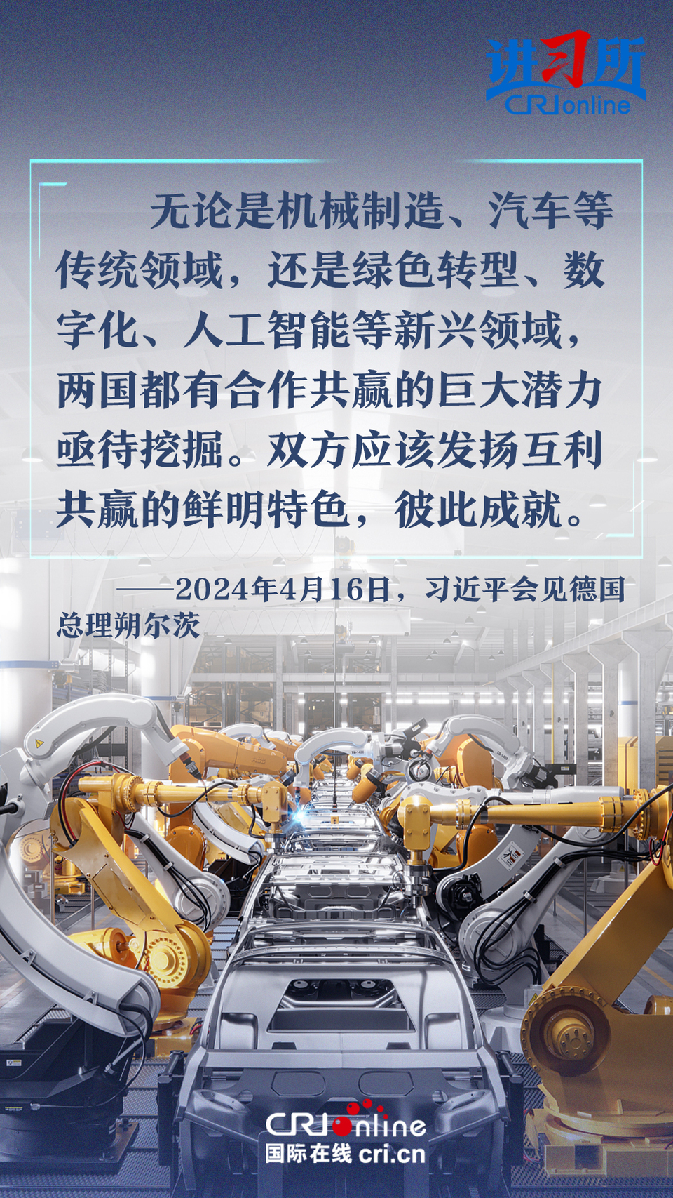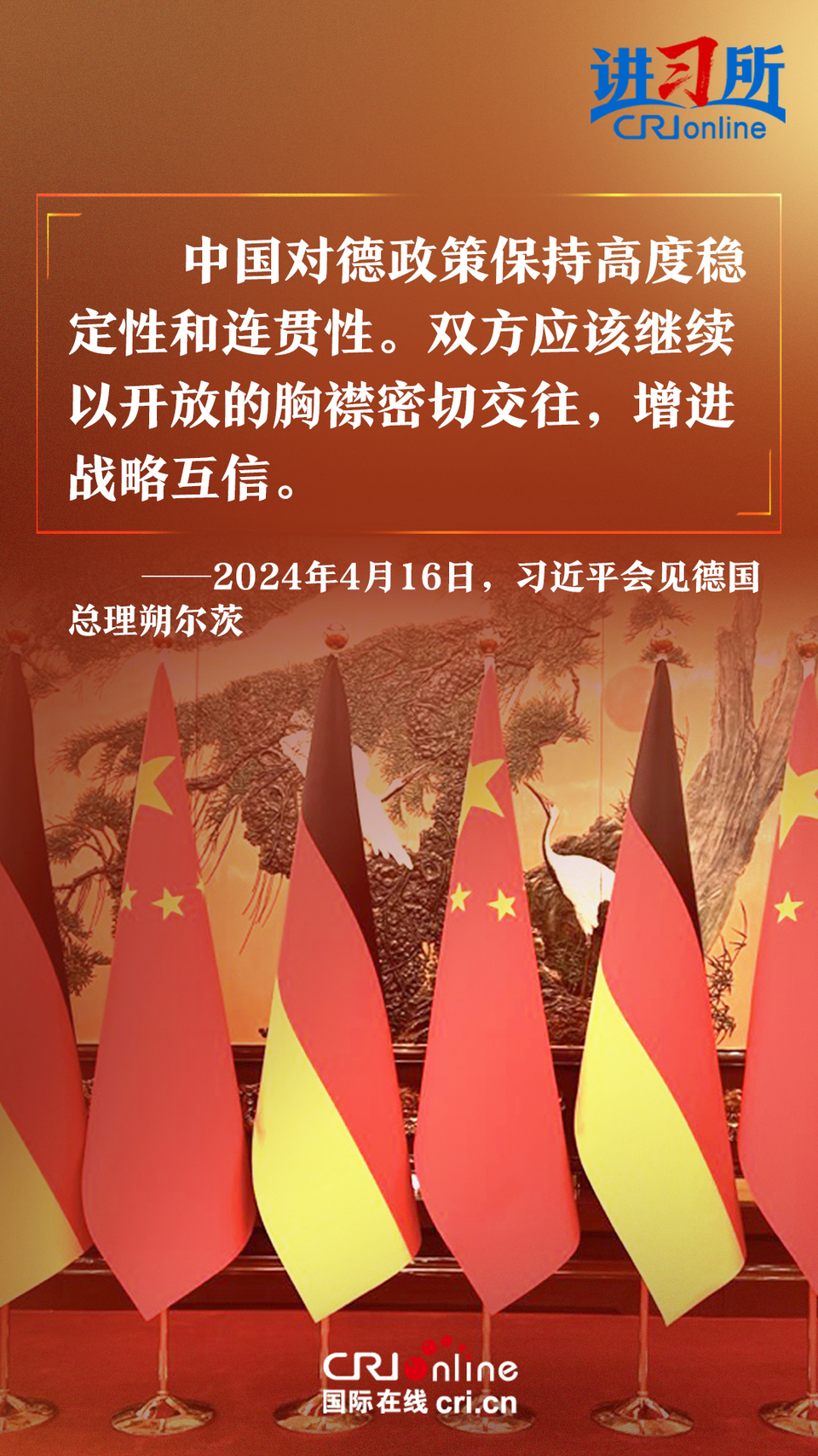 4月16日上午,中國國家主席習近平在北京釣魚臺國賓館會見了德國總理朔爾茨。習近平指出,中德合作對雙方有利,對世界有利。世界越是動蕩,雙方越要提升兩國關系的韌性和活力。中德是世界第二、第三大經(jīng)濟體,鞏固和發(fā)展中德關系的意義超越雙邊關系范疇,對亞歐大陸乃至整個世界都有重要影響。兩國要從長遠和戰(zhàn)略角度看待和發(fā)展雙邊關系,攜手為世界注入更多穩(wěn)定性和確定性。