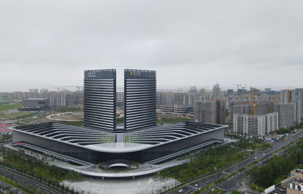 這是中國(上海)自由貿(mào)易試驗(yàn)區(qū)臨港新片區(qū)滴水湖(無人機(jī)全景照片,2023年9月6日攝)。