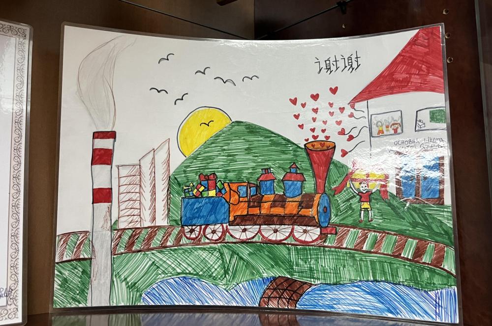 在斯梅戴雷沃鋼廠辦公樓入口處,擺放著一摞廠辦期刊。每一期封底都是一幅鋼廠子弟或當(dāng)?shù)匦W(xué)生的畫作。在孩子們眼中,鋼廠色彩斑斕:郁郁蔥蔥的山腳下,色彩鮮亮的火車頭在廠區(qū)內(nèi)穿梭,噴出“小愛心”;孩子們手持氣球,站在鋼廠援建的學(xué)校前,腳下開滿鮮花;塞中兩國員工肩并肩站在一起,兩國國旗和兩種文字的“謝謝”排列在一起。