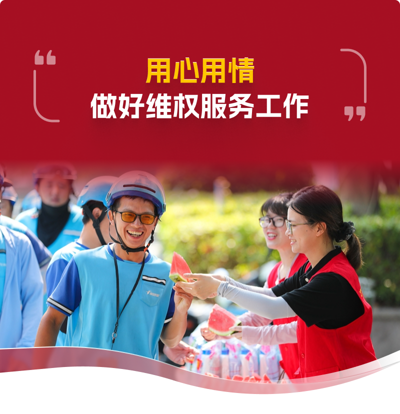 工會作為職工利益的代表者和維護(hù)者,要認(rèn)真履行維權(quán)服務(wù)基本職責(zé),著力解決關(guān)系職工群眾切身利益的實(shí)際問題,尤其要重視維護(hù)好新就業(yè)形態(tài)勞動者的合法權(quán)益。要加強(qiáng)企事業(yè)單位民主管理,暢通職工訴求表達(dá)渠道,引導(dǎo)職工依法理性有序表達(dá)利益訴求、維護(hù)自身權(quán)益,推動構(gòu)建和諧勞動關(guān)系。