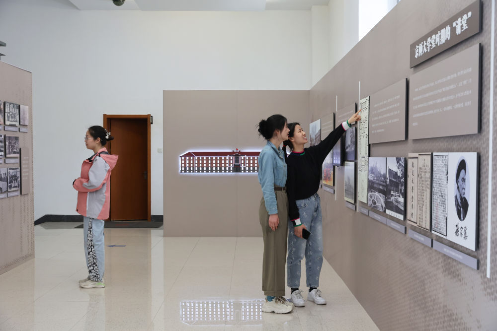 學(xué)生參觀北京大學(xué)“大講堂之路”展覽(2024年3月16日攝)。新華社記者 王翔 攝