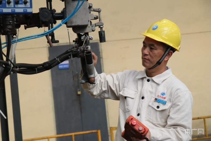 甘榮剛正在檢查焊接設備(央廣網記者 劉培俊 攝)