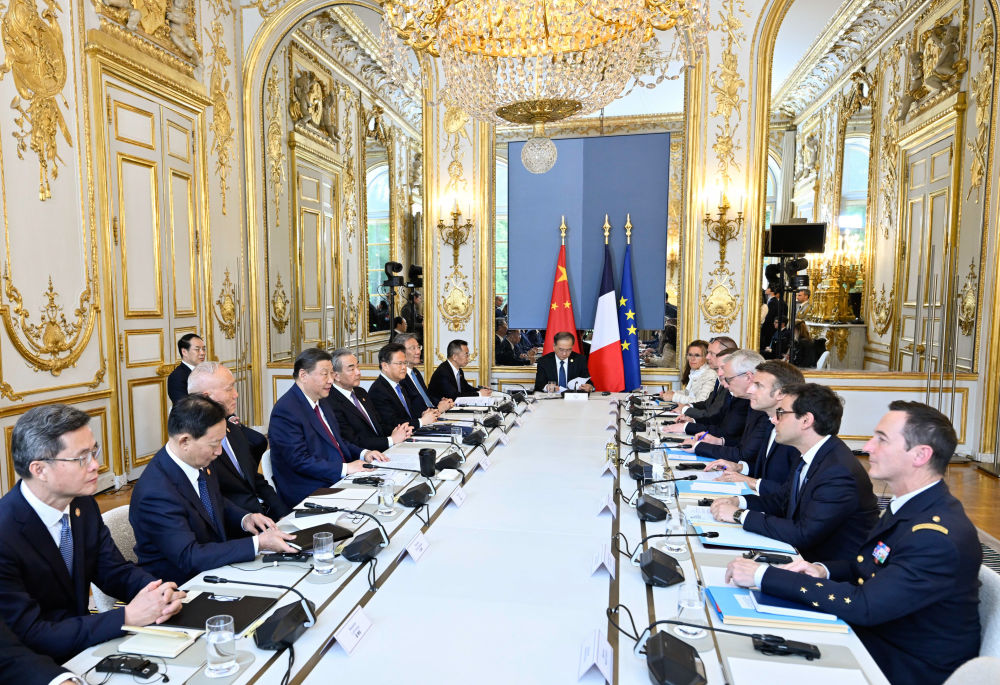 習(xí)近平指出,很高興在中法建交60周年之際對法國進行第三次國事訪問。中法關(guān)系60年珍貴歷程,將使我們更好思考如何開啟下一個60年。在當(dāng)前世界百年變局下,雙方應(yīng)該堅守獨立自主、相互理解、高瞻遠矚、互利共贏的建交初心,并為其注入新的時代內(nèi)涵,打造新時期互信穩(wěn)定、守正創(chuàng)新、擔(dān)當(dāng)作為的中法關(guān)系。雙方要堅持獨立自主,共同防止“新冷戰(zhàn)”或陣營對抗;要堅持相互理解,共同促進多彩世界的和諧共處;要堅持高瞻遠矚,共同推動平等有序的世界多極化;要堅持互利共贏,共同反對“脫鉤斷鏈”。