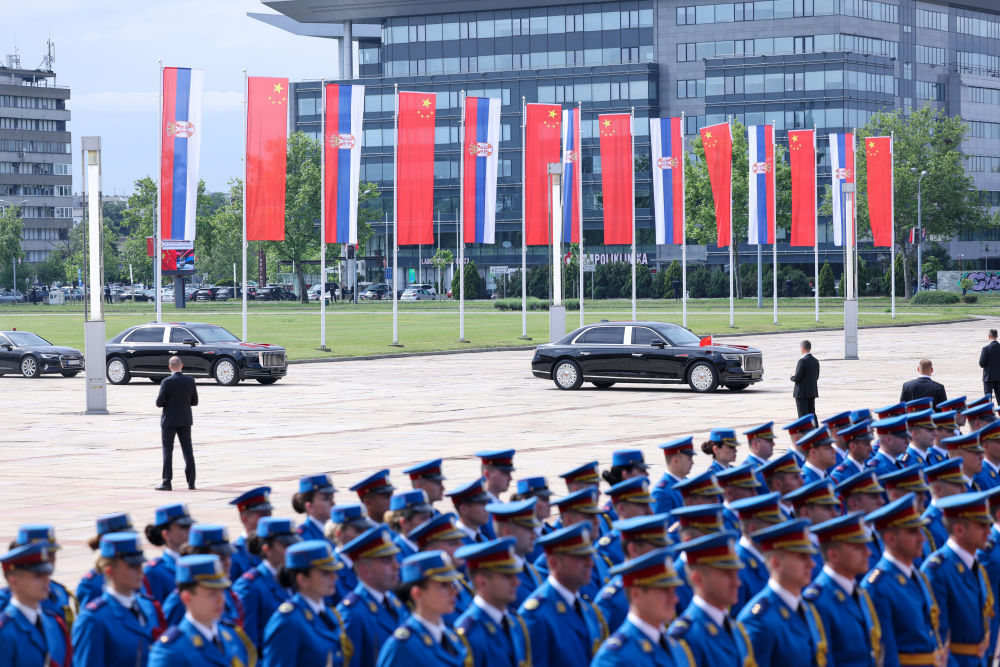 當(dāng)?shù)貢r(shí)間5月8日,國家主席習(xí)近平在貝爾格萊德出席塞爾維亞總統(tǒng)武契奇舉行的隆重盛大歡迎儀式。歡迎儀式在塞爾維亞大廈南廣場(chǎng)舉行。兩國元首共同登上檢閱臺(tái),軍樂團(tuán)奏響中塞兩國國歌,鳴10響禮炮。習(xí)近平在武契奇陪同下檢閱儀仗隊(duì)。