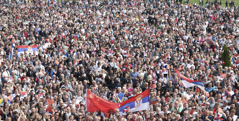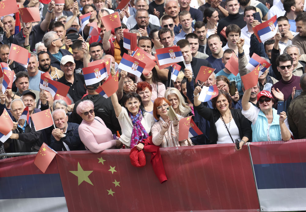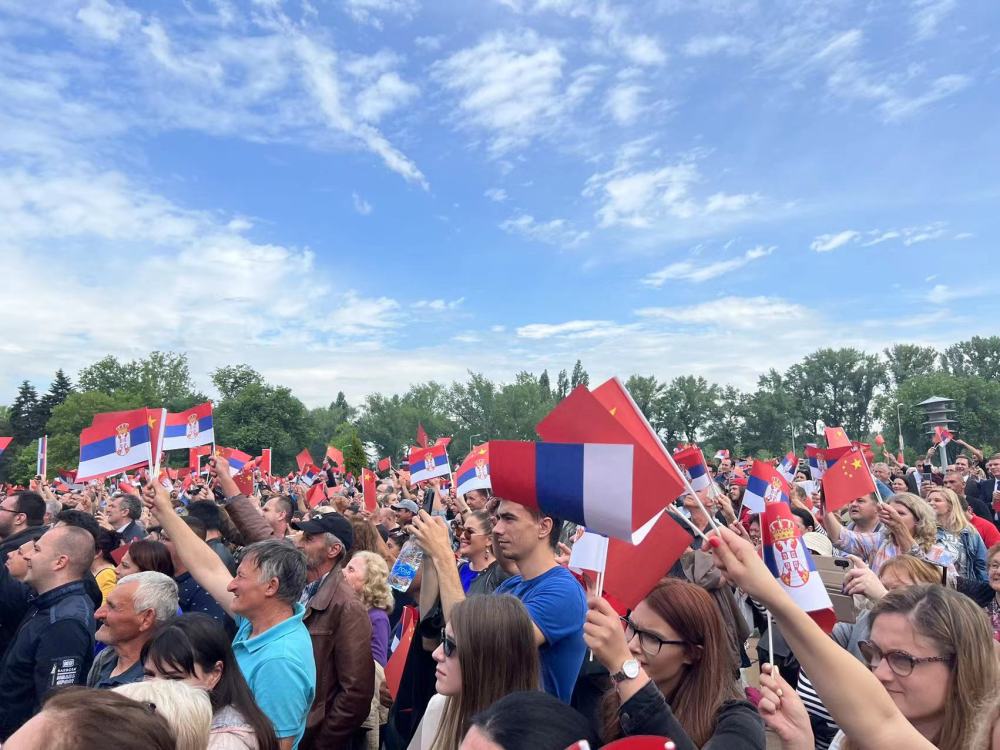 大廈廣場(chǎng)上,一萬五千名塞爾維亞民眾揮舞中塞兩國國旗,對(duì)習(xí)近平表示最熱烈的歡迎。
