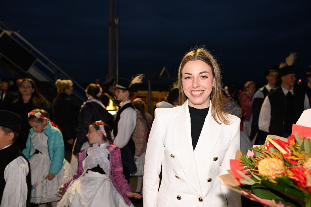 當(dāng)?shù)貢r間5月8日晚,在匈牙利布達佩斯國際機場歡迎隊伍中的匈牙利姑娘歐拉·塔瑪拉。新華社記者謝環(huán)馳攝