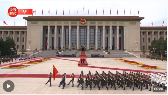 5月16日上午,國(guó)家主席習(xí)近平在北京人民大會(huì)堂東門外廣場(chǎng)舉行儀式,歡迎俄羅斯總統(tǒng)普京訪華。