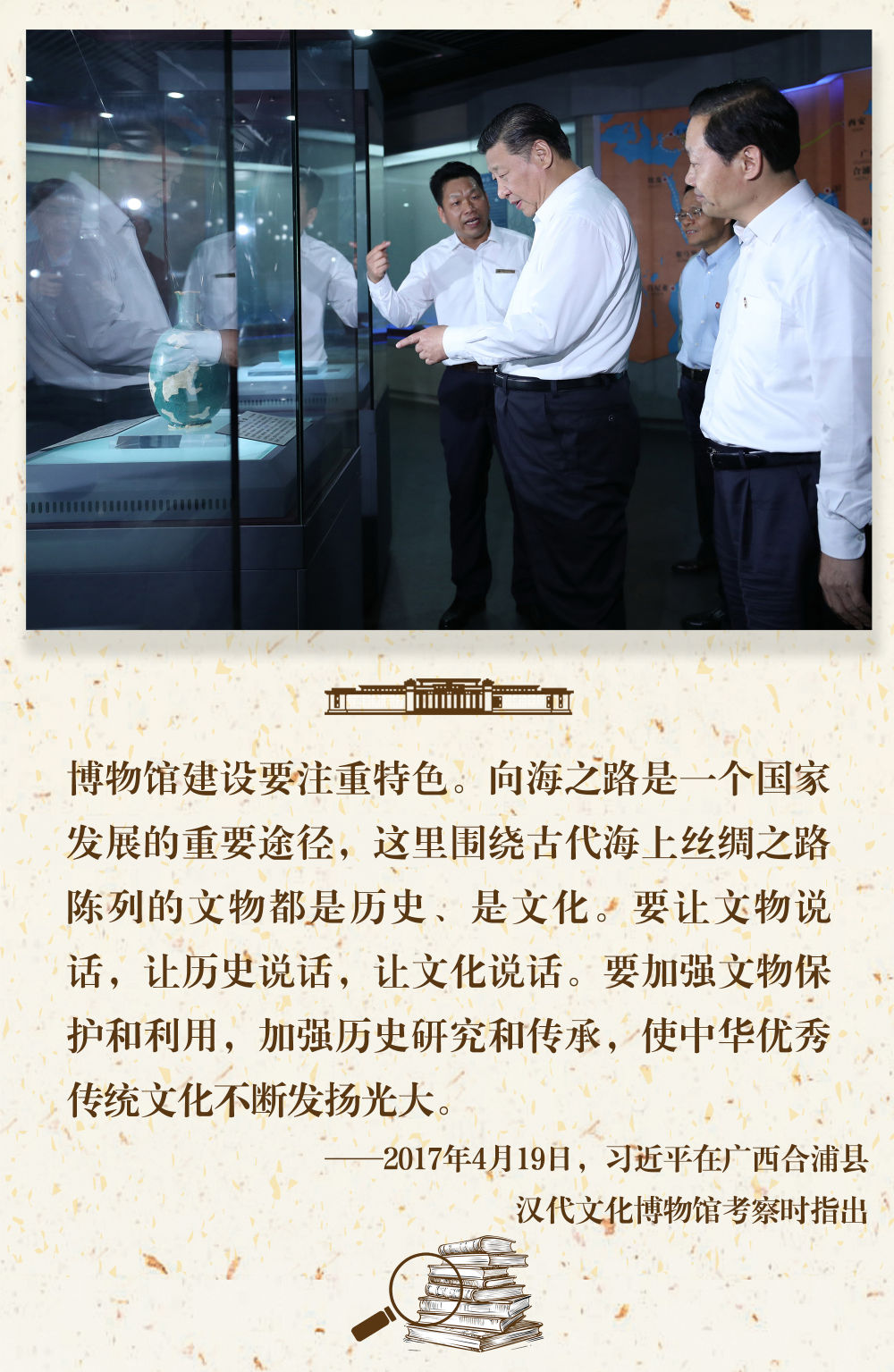 “一個(gè)博物館就是一所大學(xué)?!薄iL(zhǎng)期以來,習(xí)近平總書記十分關(guān)心博物館事業(yè)發(fā)展,多次在不同場(chǎng)合對(duì)發(fā)揮好博物館相關(guān)功能提出要求。