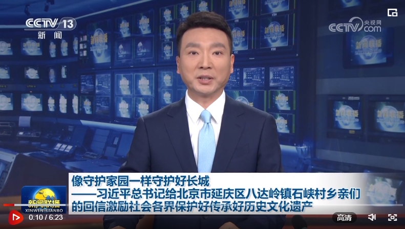 習近平總書記5月14日給北京市延慶區(qū)八達嶺鎮(zhèn)石峽村的鄉(xiāng)親們回信,強調,長城是中華民族的代表性符號和中華文明的重要象征,凝聚著中華民族自強不息的奮斗精神和眾志成城、堅韌不屈的愛國情懷。勉勵鄉(xiāng)親們,帶動更多人了解長城、保護長城,把祖先留下的這份珍貴財富世世代代傳下去。習近平總書記的回信在社會各界引發(fā)熱烈反響。
