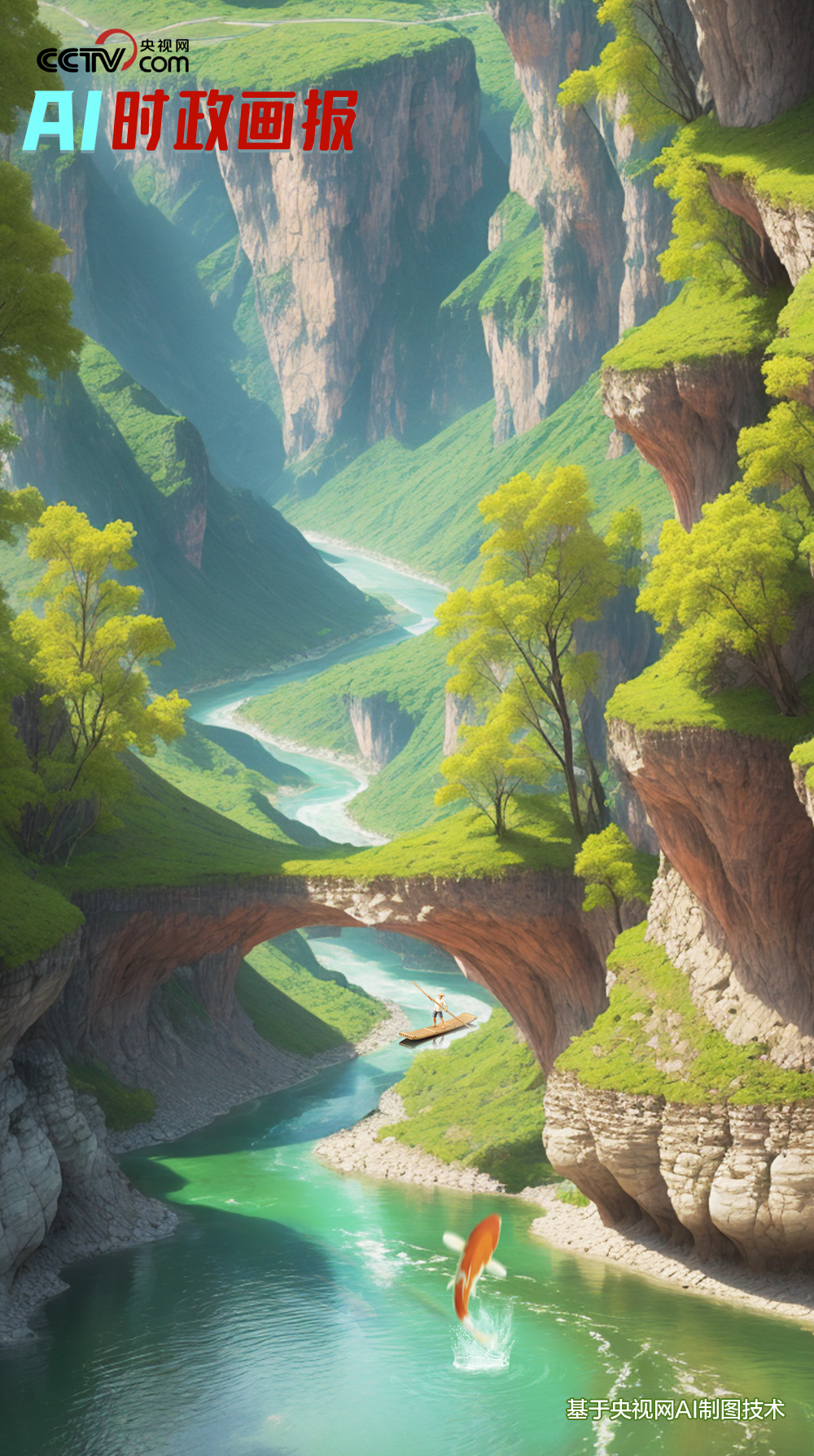 習(xí)近平和大家一起乘坐竹排,行進(jìn)溪上。行到中游,一條紅鯉魚(yú)從水中躍上竹排,不偏不倚,正好落在習(xí)近平腳邊。