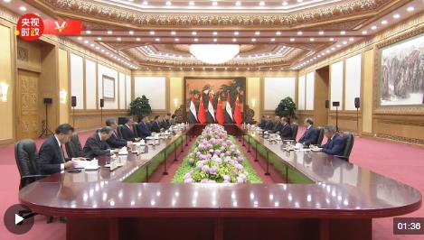 5月29日下午,國家主席習(xí)近平在北京人民大會堂同來華出席中國—阿拉伯國家合作論壇第十屆部長級會議開幕式并進行國事訪問的埃及總統(tǒng)塞西舉行會談。