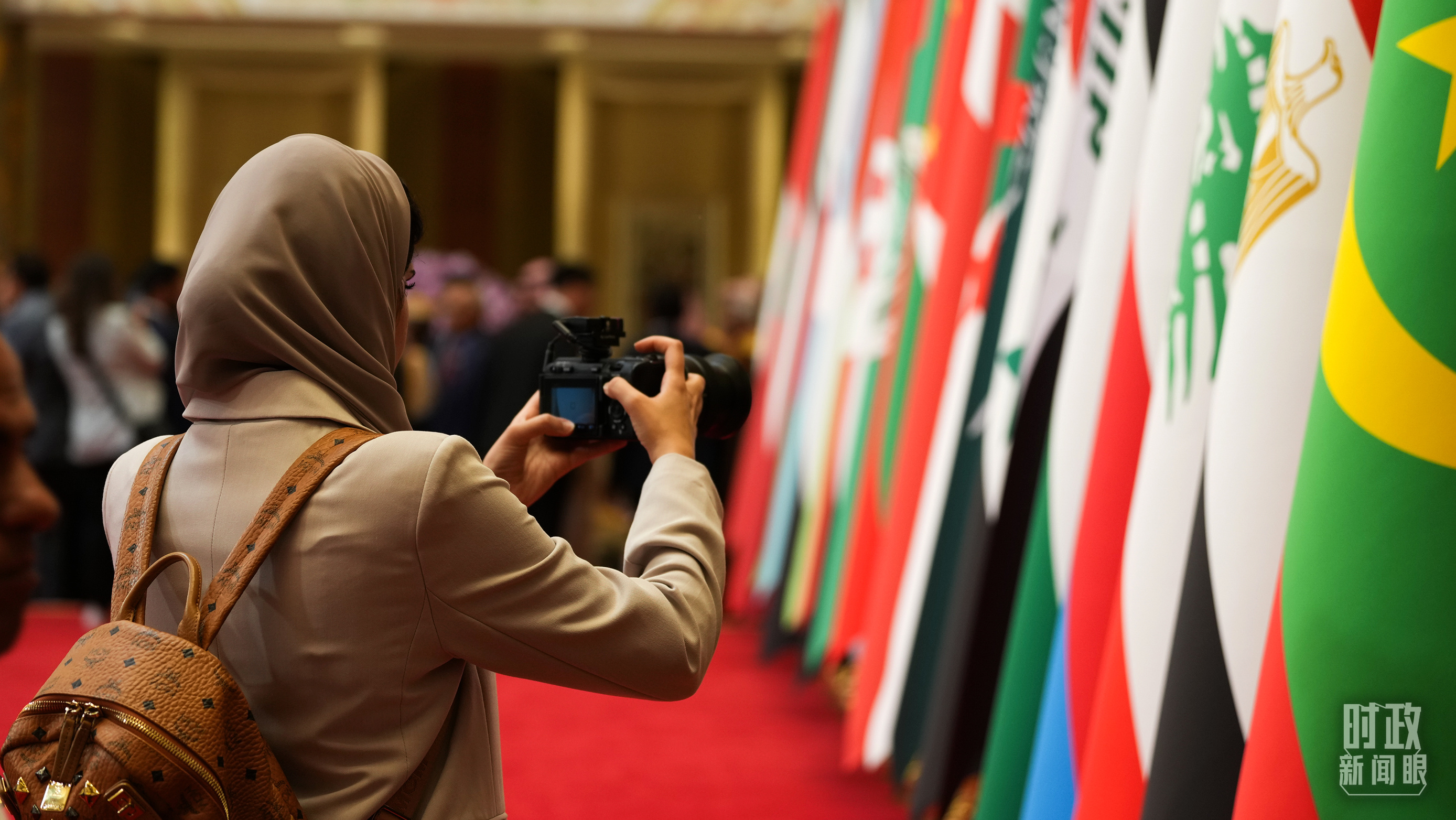 會議現(xiàn)場的旗陣。(總臺央廣記者馬喆拍攝)
