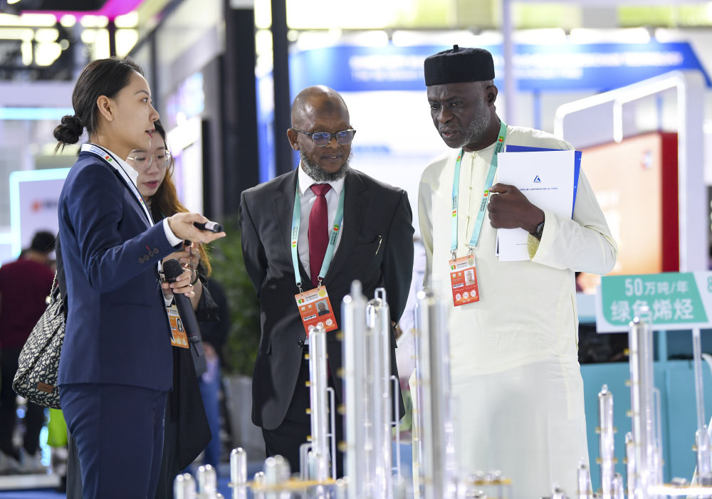 2023年9月22日,嘉賓在第六屆中阿博覽會(huì)上了解清潔能源項(xiàng)目。新華社記者 馮開華 攝