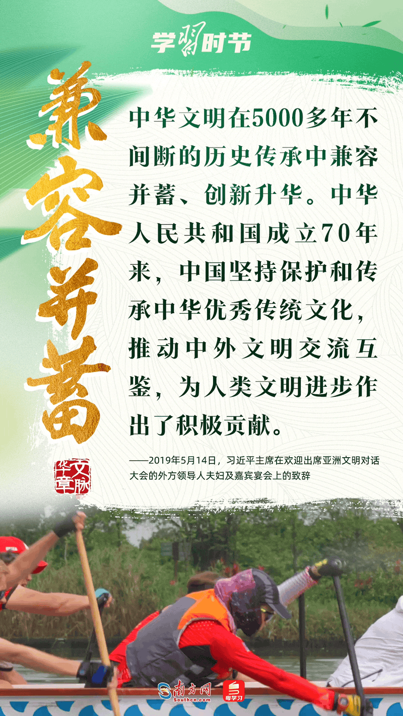 “中華優(yōu)秀傳統(tǒng)文化是中華民族的精神命脈?!绷暯娇倳洀娬{(diào),要努力從中華民族世世代代形成和積累的優(yōu)秀傳統(tǒng)文化中汲取營養(yǎng)和智慧,延續(xù)文化基因,萃取思想精華,展現(xiàn)精神魅力。讓我們深刻感悟總書記的殷切寄語,一同感受龍舟競渡時的歡騰場景,從中汲取中華民族血脈傳承中奔涌的精神力量。
