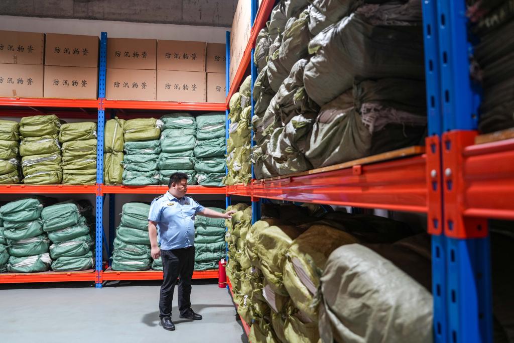 6月18日,在湖南省長沙市天心區(qū)防汛物資倉庫,應急管理局工作人員在檢查防汛物資。新華社記者 陳思汗 攝