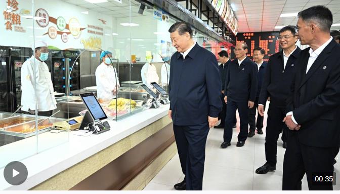 18日下午,習近平總書記來到果洛西寧民族中學,走進食堂察看學生就餐條件,囑咐食堂工作人員一定要確保學生飲食安全、營養(yǎng)可口。