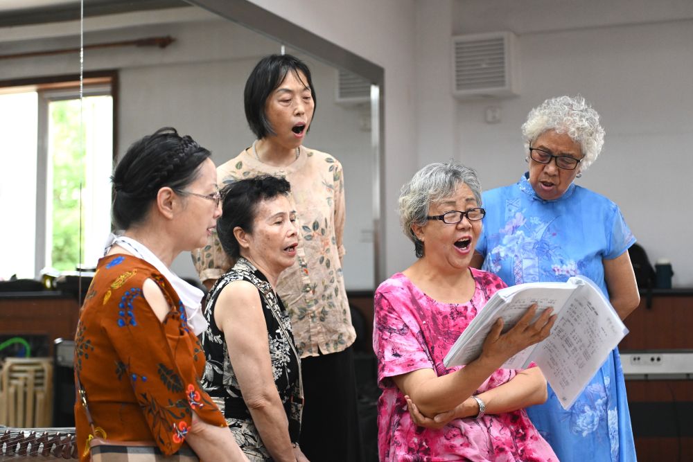 6月20日,寧夏銀川市金鳳區(qū)長城花園社區(qū)居民在練習(xí)唱歌。