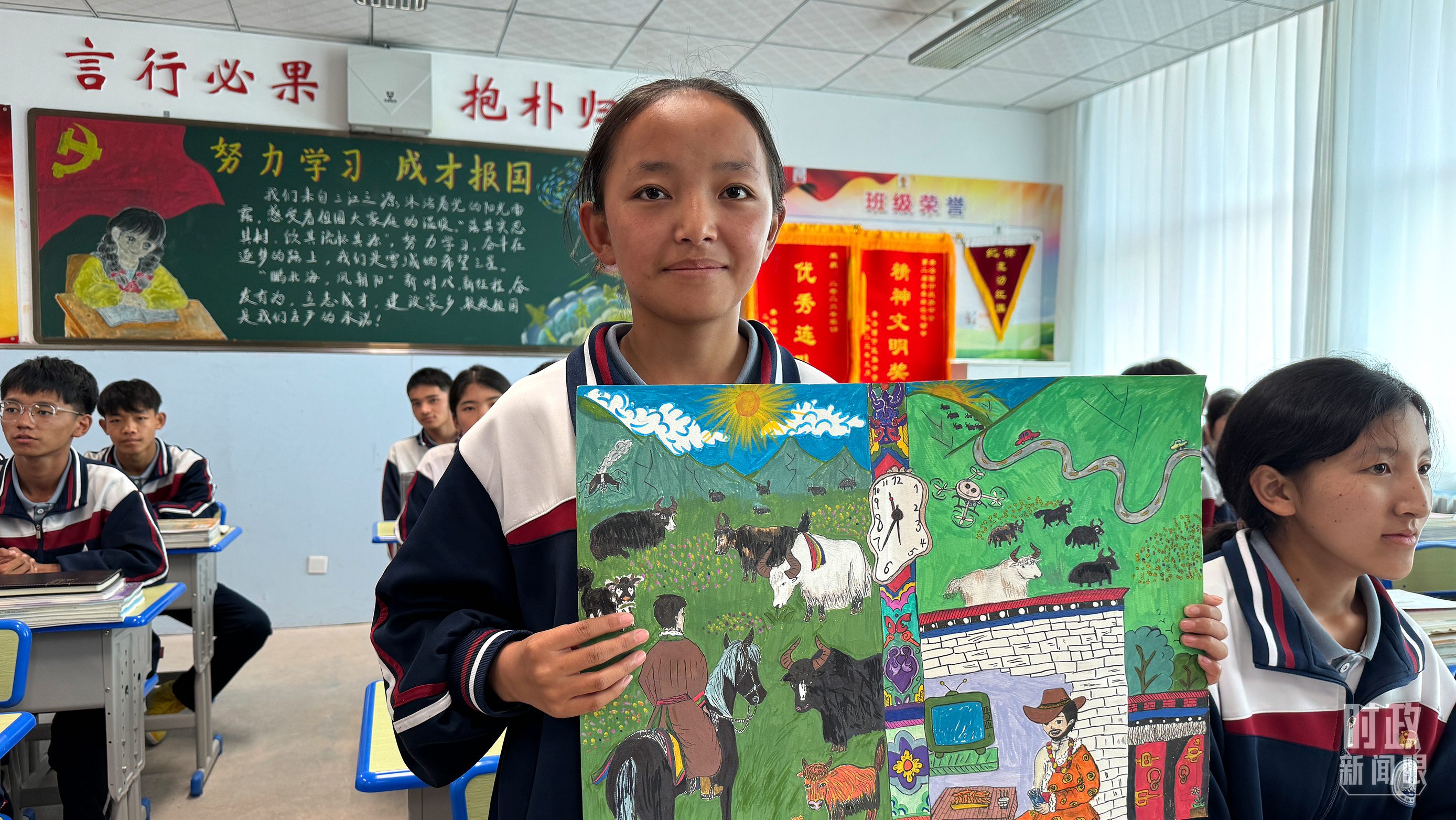 果洛西寧民族中學高一(1)班的“新時代、新家鄉(xiāng)”主題思政課。(總臺央視記者許永松、國廣記者李晉拍攝)