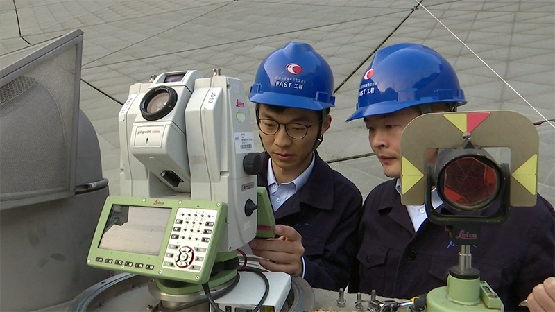 “中國天眼”團(tuán)隊(duì)的技術(shù)人員正在操作設(shè)備,開展科研工作。