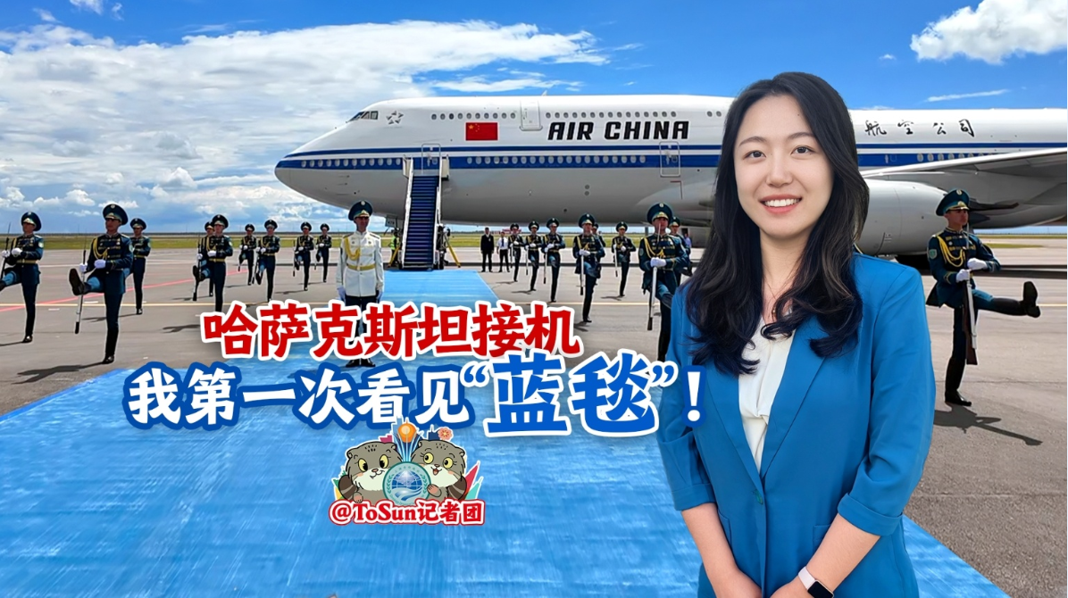 ToSun記者團(tuán)在現(xiàn)場(chǎng)第一次見到了用天藍(lán)色地毯鋪就的“紅毯”。藍(lán)毯寓意是什么?一起來(lái)看現(xiàn)場(chǎng)。
