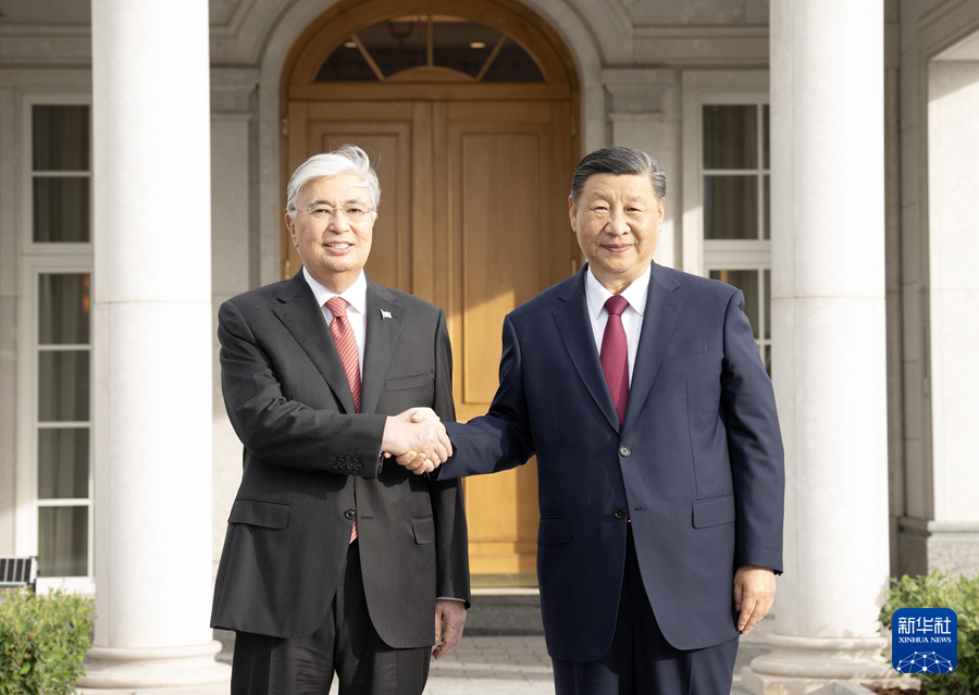 當(dāng)?shù)貢r間7月2日晚,國家主席習(xí)近平應(yīng)邀同哈薩克斯坦總統(tǒng)托卡耶夫共進晚餐,在愉快溫馨的環(huán)境中就中哈關(guān)系和共同關(guān)心的問題進行了親切友好的交流。這是習(xí)近平同托卡耶夫握手。