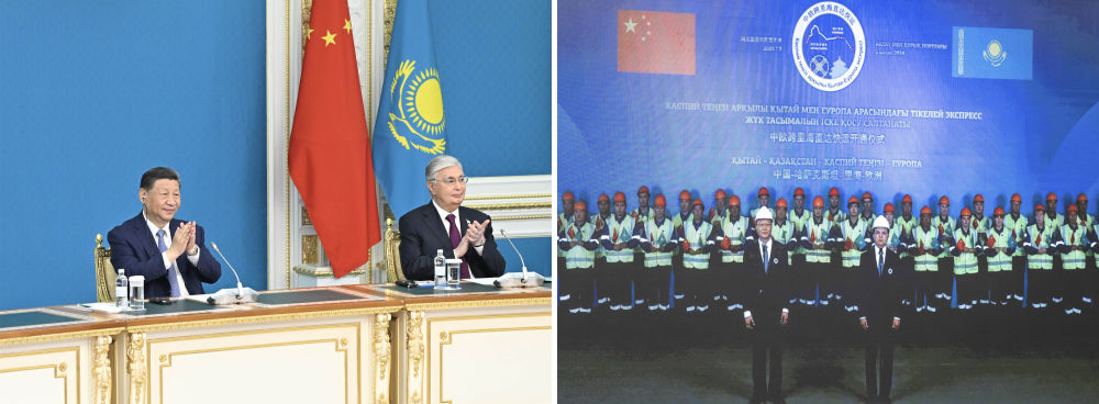 中午,習(xí)近平同托卡耶夫在阿斯塔納總統(tǒng)府以視頻方式共同出席中歐跨里海直達(dá)快運開通儀式。哈方項目負(fù)責(zé)人向兩國元首匯報準(zhǔn)備情況,中方項目負(fù)責(zé)人請兩國元首下達(dá)指令。兩國元首共同下達(dá)作業(yè)指令:“啟運!”兩國元首通過大屏幕觀看車輛登船、集裝箱裝船等實時情況?,F(xiàn)場響起熱烈掌聲。