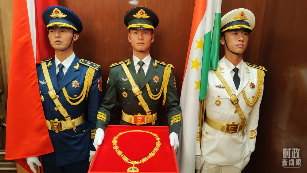 此訪期間,中塔友誼見證又一個(gè)“高光時(shí)刻”:習(xí)近平主席在杜尚別總統(tǒng)府舉行隆重授勛儀式,向拉赫蒙總統(tǒng)頒授中華人民共和國(guó)“友誼勛章”。