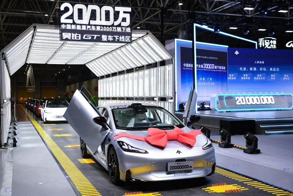 2023年7月3日,我國(guó)第2000萬(wàn)輛新能源汽車在廣州下線。