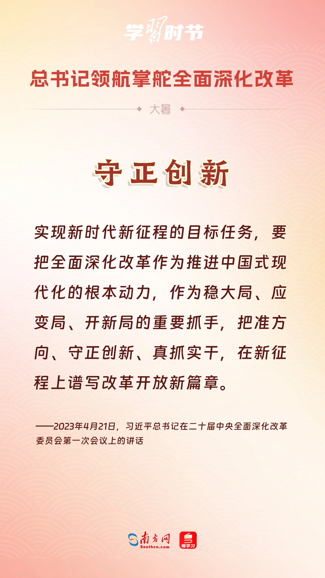 黨的十八大以來,習(xí)近平總書記親自領(lǐng)導(dǎo)、親自部署、親自推動(dòng)全面深化改革工作,推動(dòng)全面深化改革事業(yè)在攻堅(jiān)克難中不斷邁上新臺(tái)階、取得新勝利。在驕陽似火的大暑時(shí)節(jié),通過一組海報(bào),讓我們共同學(xué)習(xí)習(xí)近平總書記關(guān)于“全面深化改革”的重要論述。