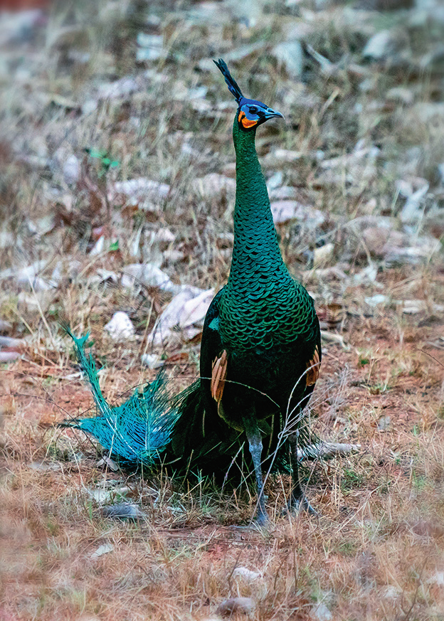 云南楚雄雙柏縣恐龍河自然保護區(qū)的綠孔雀(2023年4月20日攝)胡超 攝/本刊