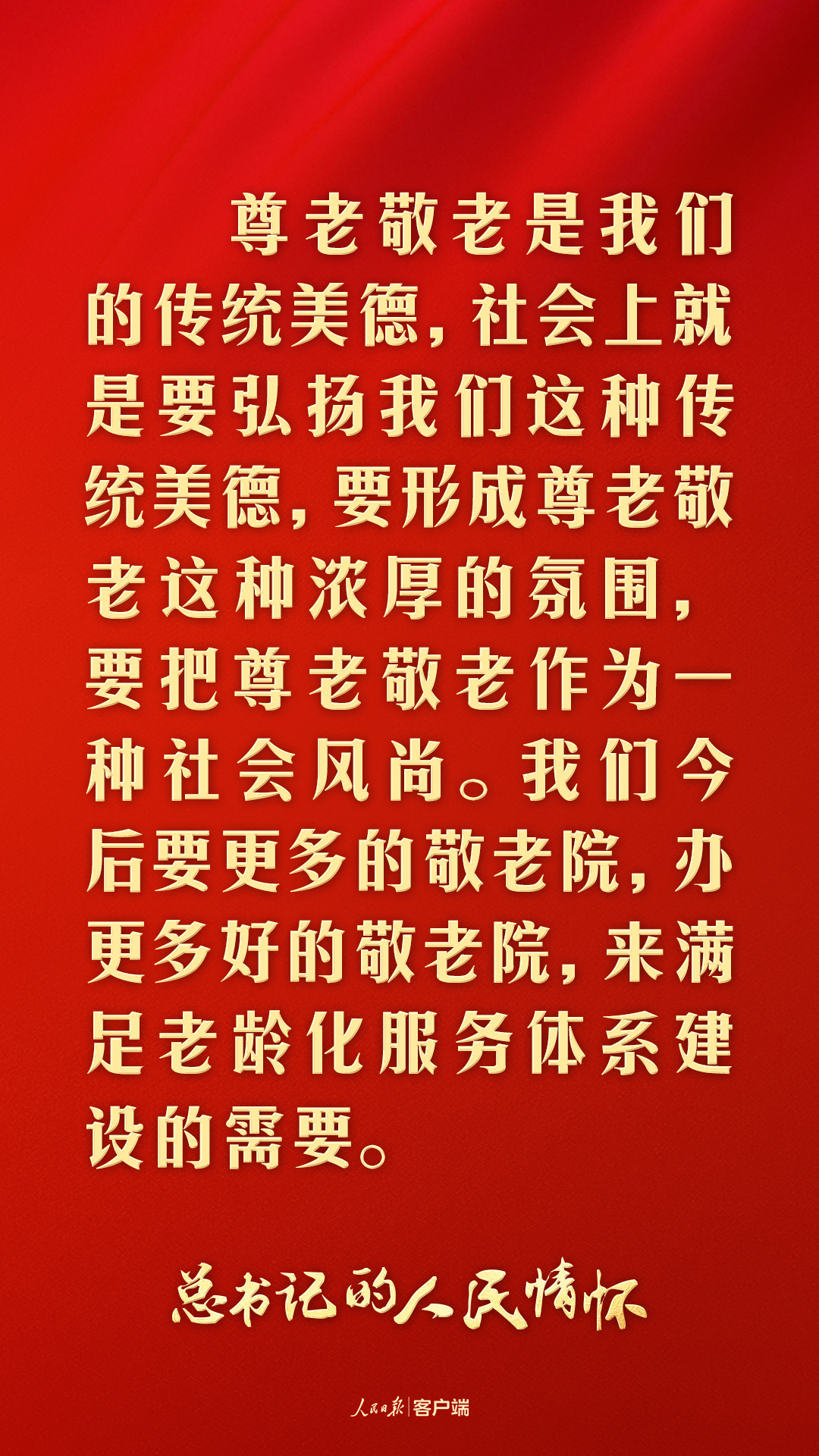 “一個(gè)社會(huì)幸福不幸福,很重要的是看老年人幸福不幸福?!?023年春節(jié)前夕,習(xí)近平總書記視頻連線看望慰問(wèn)基層干部群眾時(shí),強(qiáng)調(diào)要大力發(fā)展養(yǎng)老事業(yè)和養(yǎng)老產(chǎn)業(yè),“一定要讓老年人有一個(gè)幸福的晚年”。