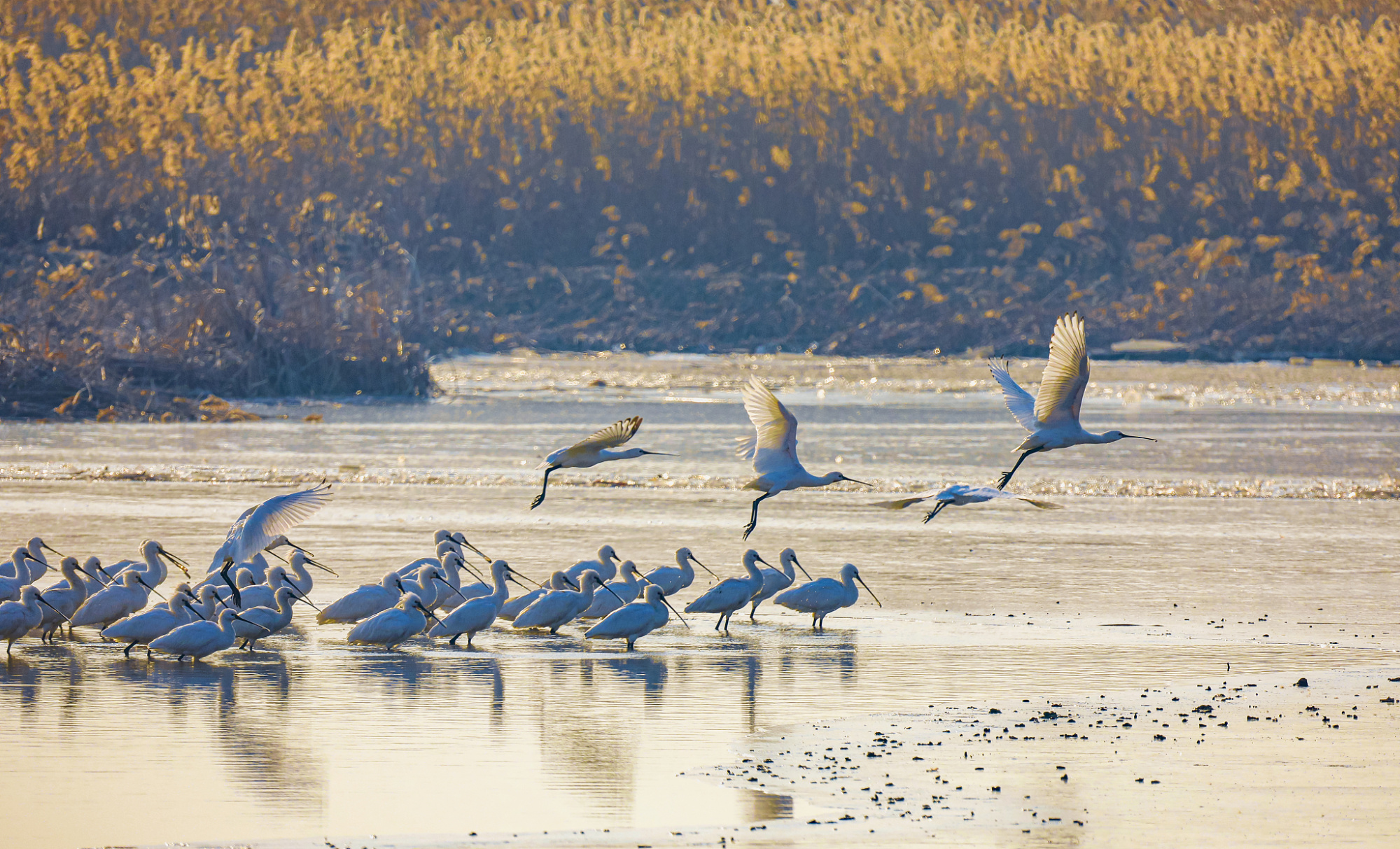 江蘇鹽城保護(hù)區(qū)的丹頂鶴和琵琶鷺