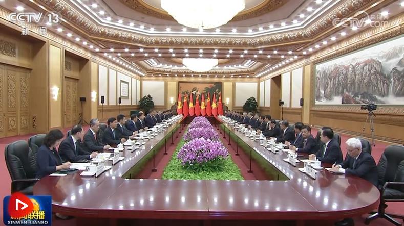 8月19日,中共中央總書記、國家主席習(xí)近平在北京人民大會堂同來華進(jìn)行國事訪問的越共中央總書記、國家主席蘇林舉行會談。