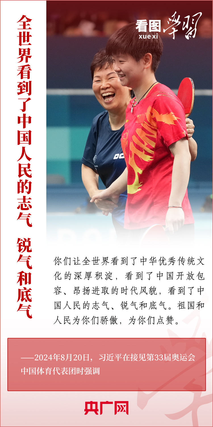 “祖國和人民為你們驕傲,為你們點贊?!?月20日,習近平總書記在人民大會堂接見第33屆奧運會中國體育代表團并發(fā)表重要講話。總書記高度肯定中國體育代表團取得的優(yōu)異成績,贊揚他們充分彰顯了新時代中國力量、生動詮釋了新時代中國精神、充分展現(xiàn)了新時代中國形象,勉勵大家戒驕戒躁、再接再厲,為建設體育強國再立新功。一起來學習!