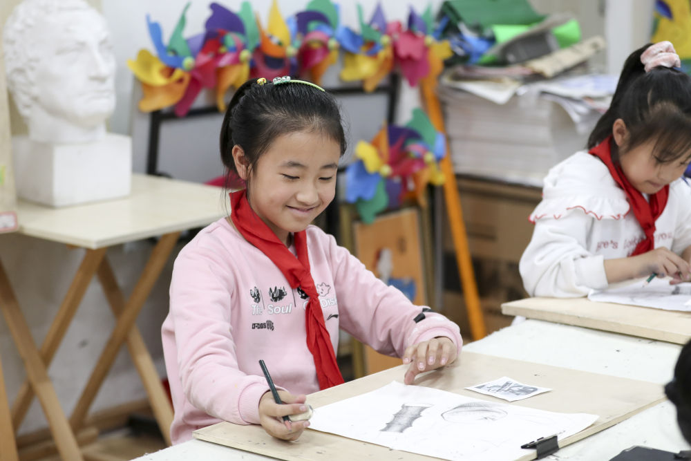 2021年10月27日,學(xué)生在黑龍江省哈爾濱市榆樹(shù)鎮(zhèn)中心校新鄉(xiāng)小學(xué)鄉(xiāng)村學(xué)校少年宮參加美術(shù)學(xué)習(xí)班。近年來(lái),黑龍江省各地以鄉(xiāng)村小學(xué)為基礎(chǔ),大力發(fā)展鄉(xiāng)村學(xué)校少年宮,開(kāi)設(shè)德育、文藝、體育、科普、手工等多種課外活動(dòng),滿足學(xué)生需求,培養(yǎng)孩子們的興趣愛(ài)好和特長(zhǎng)。