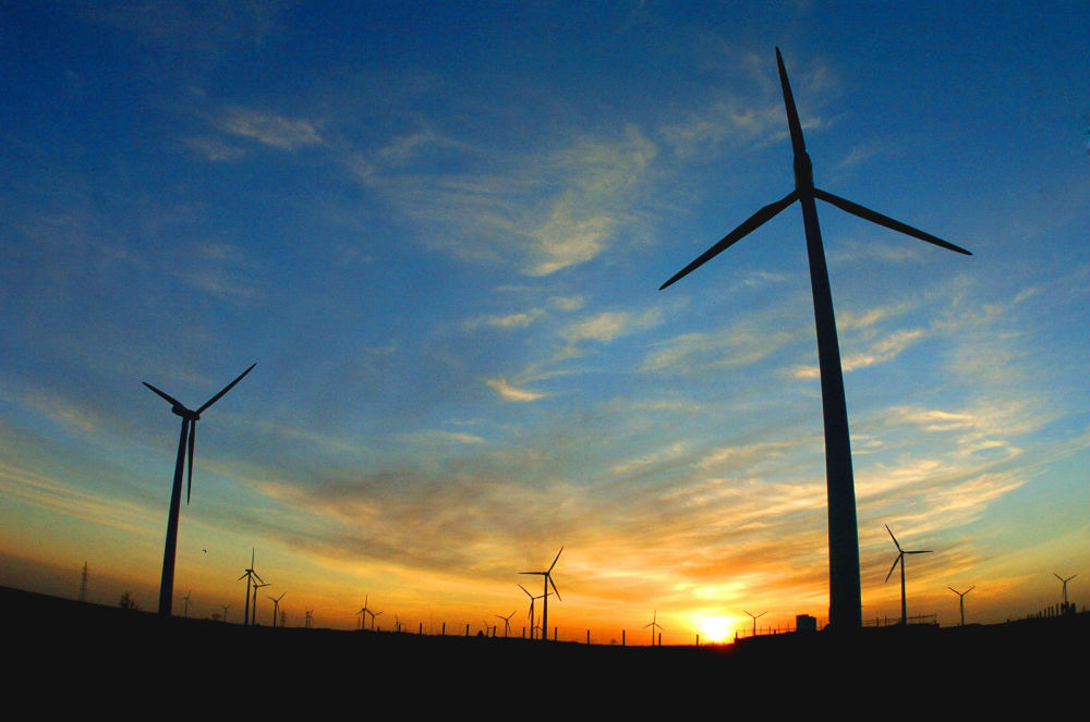2005年,吉林省白城市通榆縣境內(nèi)幾十部風(fēng)力發(fā)電機組在工作。新華社發(fā)
