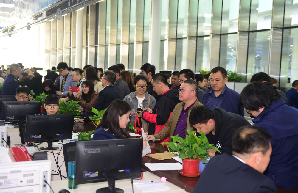 2017年4月10日,中國(遼寧)自由貿(mào)易試驗區(qū)沈陽片區(qū)揭牌當(dāng)日,眾多企業(yè)咨詢注冊。新華社記者楊青 攝