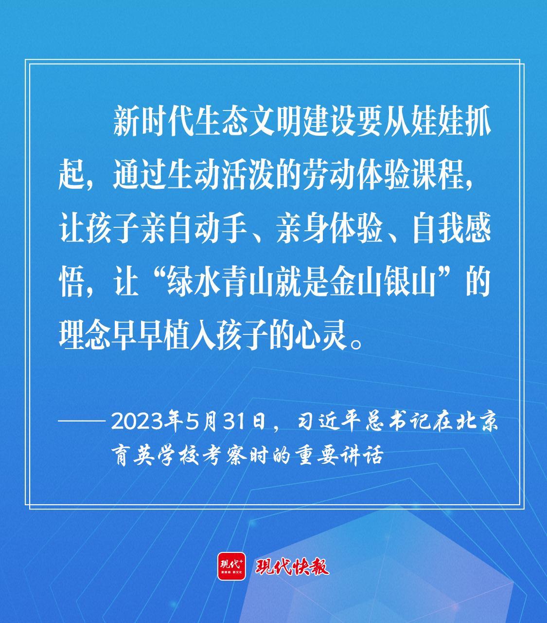 2023年5月,習近平總書記在北京育英學校考察時強調(diào),新時代生態(tài)文明建設要從娃娃抓起,通過生動活潑的勞動體驗課程,讓孩子親自動手、親身體驗、自我感悟,讓“綠水青山就是金山銀山”的理念早早植入孩子的心靈。