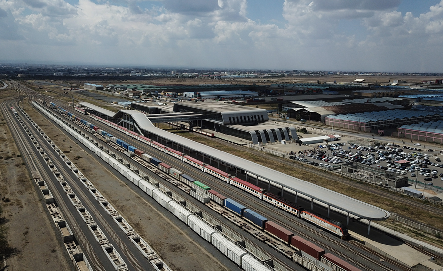 這是2023年9月20日在肯尼亞首都內(nèi)羅畢拍攝的蒙內(nèi)鐵路內(nèi)羅畢站(無(wú)人機(jī)照片)。新華社記者 韓旭 攝