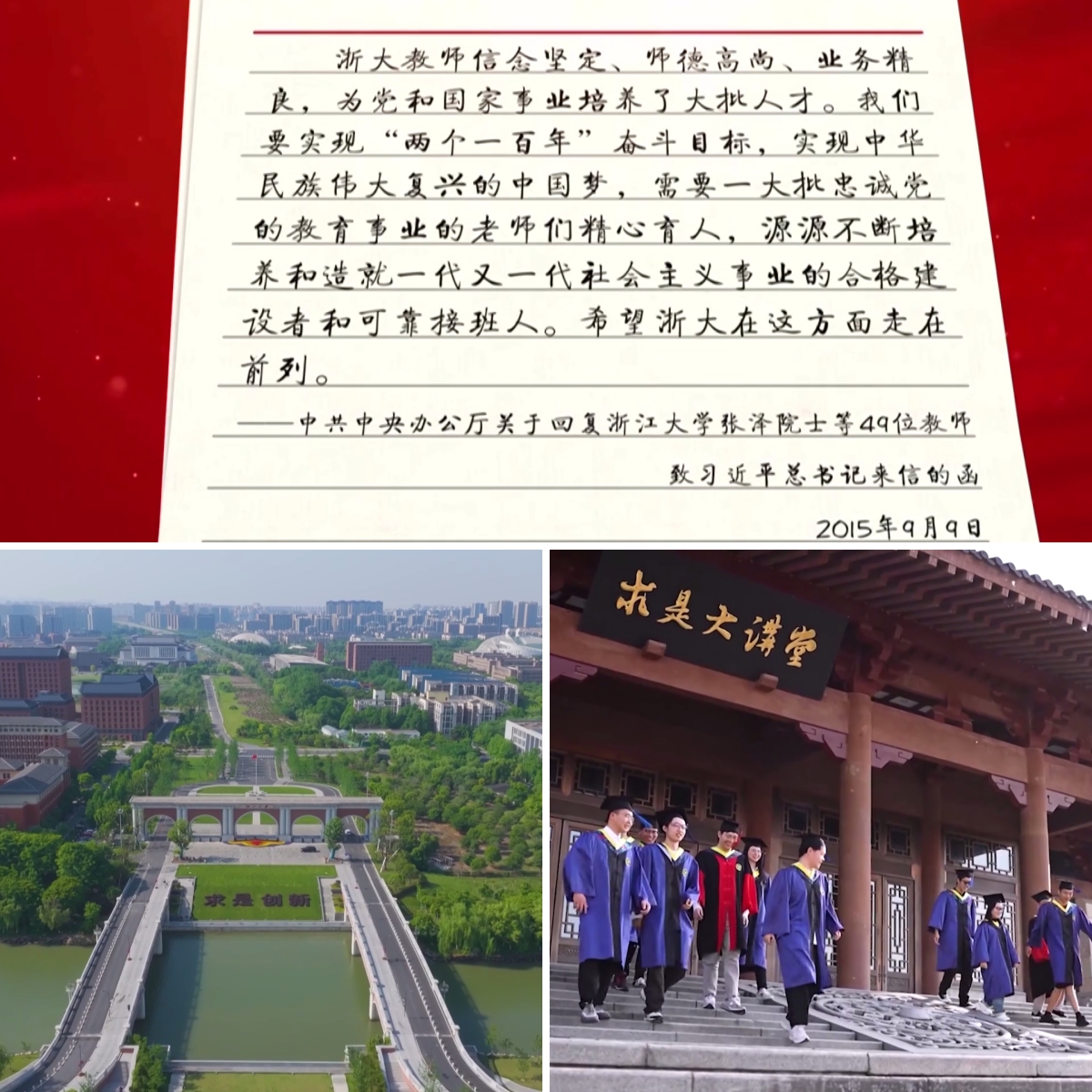 2015年9月9日,教師節(jié)前一天,浙江大學(xué)的49位老師收到了一份特殊的教師節(jié)禮物,習(xí)近平總書(shū)記特別囑咐中共中央辦公廳,發(fā)來(lái)了關(guān)于回復(fù)49位老師來(lái)信的函。