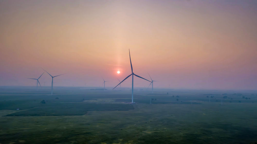 科爾沁大草原上,牛羊健碩。藍(lán)天白云下,一排排巨型“風(fēng)車”緩緩旋轉(zhuǎn),在古老草原上勾勒出現(xiàn)代的“天際線”。這里是內(nèi)蒙古通遼市238萬千瓦風(fēng)電基地。