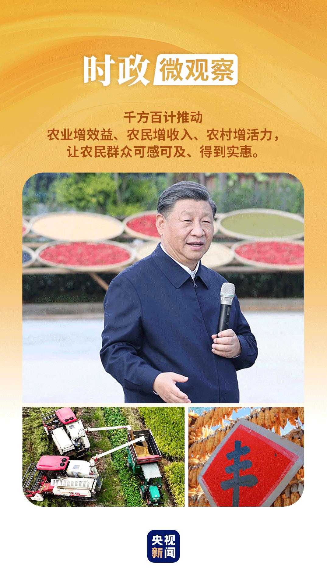 在第七個“中國農(nóng)民豐收節(jié)”到來之際,習近平總書記代表黨中央,向全國廣大農(nóng)民和工作在“三農(nóng)”戰(zhàn)線上的同志們致以節(jié)日祝賀和誠摯問候,對于堅持不懈夯實農(nóng)業(yè)基礎,推進鄉(xiāng)村全面振興提出殷切期望和要求——