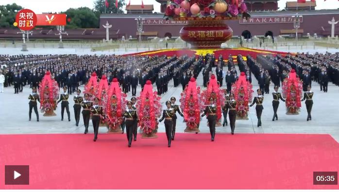 烈士紀(jì)念日向人民英雄敬獻(xiàn)花籃儀式今天上午在北京天安門(mén)廣場(chǎng)隆重舉行,習(xí)近平等黨和國(guó)家領(lǐng)導(dǎo)人向人民英雄敬獻(xiàn)花籃。