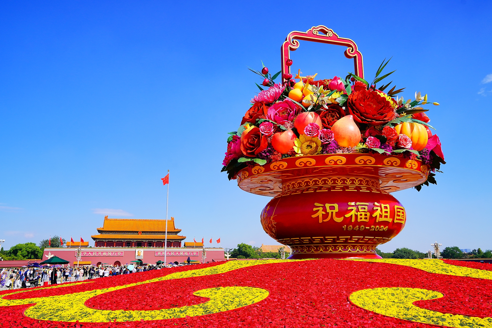 北京:天安門廣場(chǎng)上的“祝福祖國”巨型花籃
