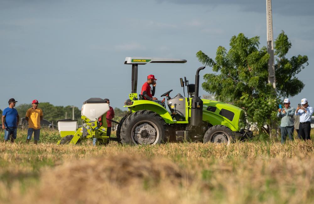 2024年2月2日,在巴西阿波迪的中巴農(nóng)業(yè)機(jī)械化合作示范農(nóng)場,一款中國生產(chǎn)的農(nóng)機(jī)在田間示范作業(yè),吸引了人們觀看。中巴農(nóng)業(yè)機(jī)械化合作示范農(nóng)場旨在助力巴西農(nóng)業(yè)生產(chǎn),促進(jìn)中小農(nóng)戶減貧和鄉(xiāng)村振興。