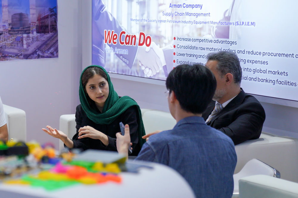 2024年9月15日,在位于北京的服貿(mào)會國家會議中心展區(qū),來自伊朗的參展商與中方參展人員交流。2024年一季度我國對伊朗市場采購出口同比增長15.2%。