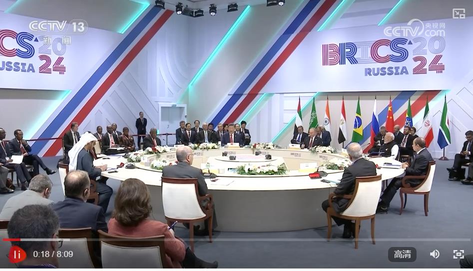 當(dāng)?shù)貢r間10月23日上午,金磚國家領(lǐng)導(dǎo)人第十六次會晤在喀山會展中心舉行。俄羅斯總統(tǒng)普京主持會晤。中國國家主席習(xí)近平、巴西總統(tǒng)盧拉(線上)、埃及總統(tǒng)塞西、埃塞俄比亞總理阿比、印度總理莫迪、伊朗總統(tǒng)佩澤希齊揚、南非總統(tǒng)拉馬福薩、阿聯(lián)酋總統(tǒng)穆罕默德等出席。