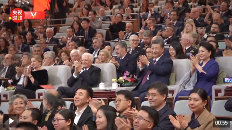11月8日晚,國家主席習近平和夫人彭麗媛在北京國家大劇院同意大利總統(tǒng)馬塔雷拉和女兒勞拉一同觀看“奇妙的和諧”——普契尼音樂會。